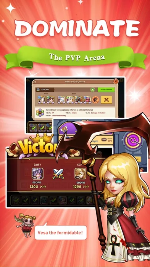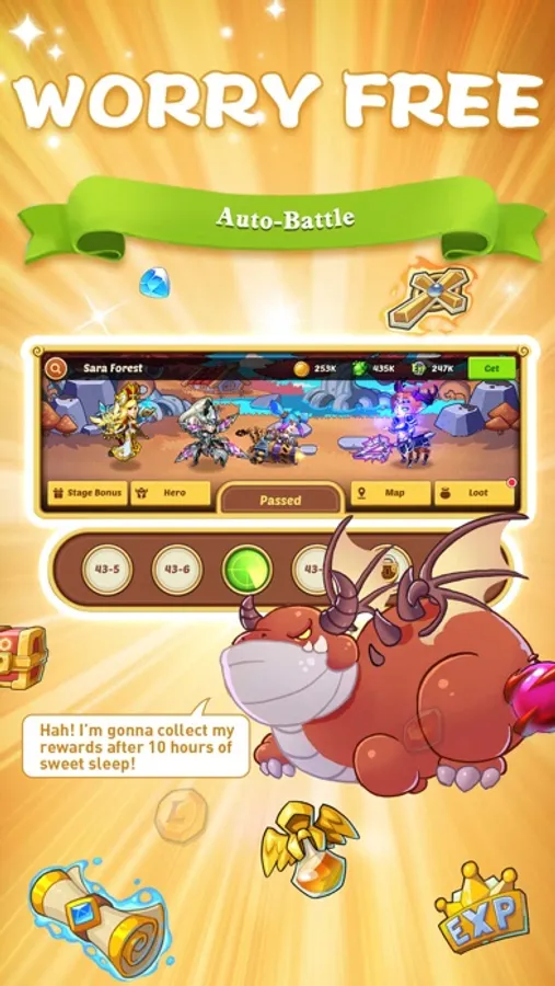 Set your heroes training while you’re away. When you return to your phone, they will be stronger, gained new abilities, and ready for battle. Grow & Train a powerful squad without all the grinding!