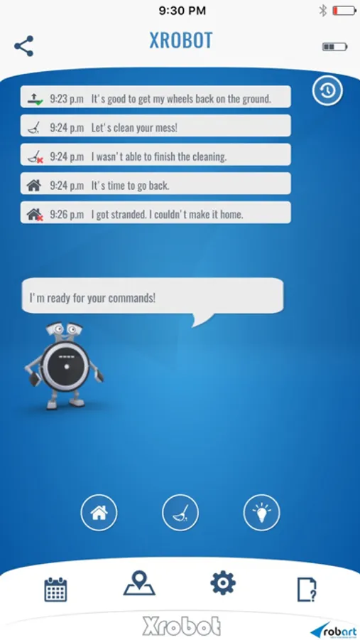 Get informed about your robots ongoings while your absence by browsing the robots history."