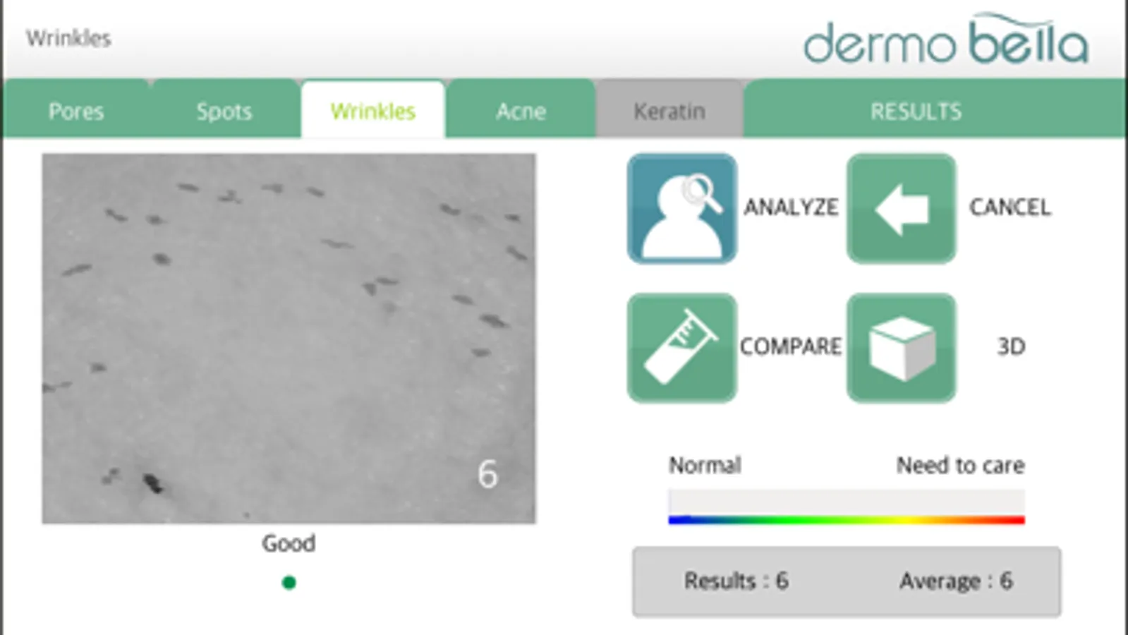 For skin: Moisture, Pores, Spots, Wrinkles, Acne, Keratin, Skin type