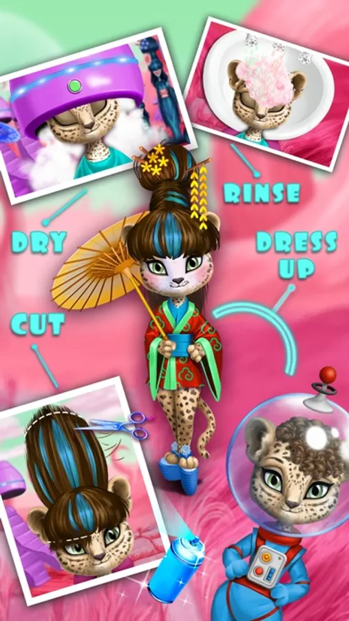 · Leopard Amy is on a pink hair planet. Style her hair and create a fantasy space geisha look!