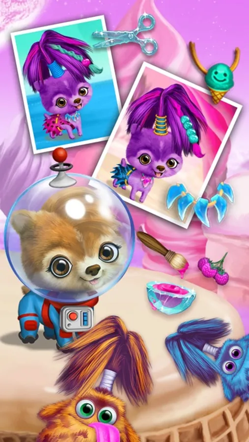 · Help Pomeranian puppy Pepper look like his new tiny hairy alien friends from the ice cream planet!