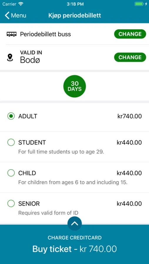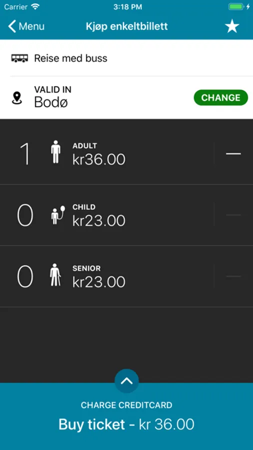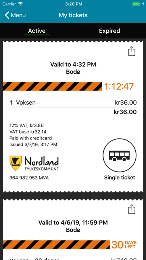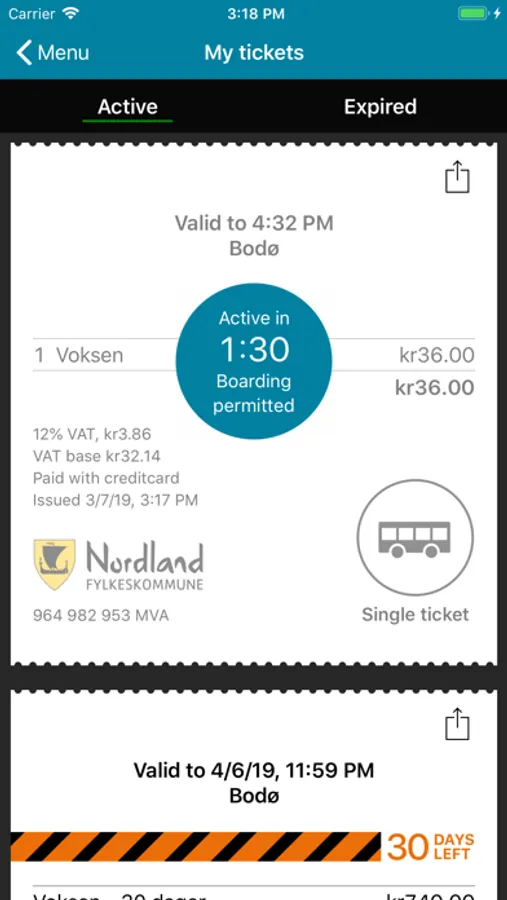 The mobile application makes it possible to buy single tickets and period tickets for all scheduled buses in Nordland. This applies to the scheduled buses set up under the auspices of the Nordland county municipality.