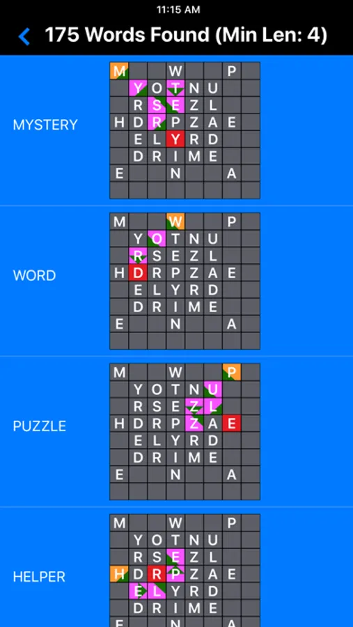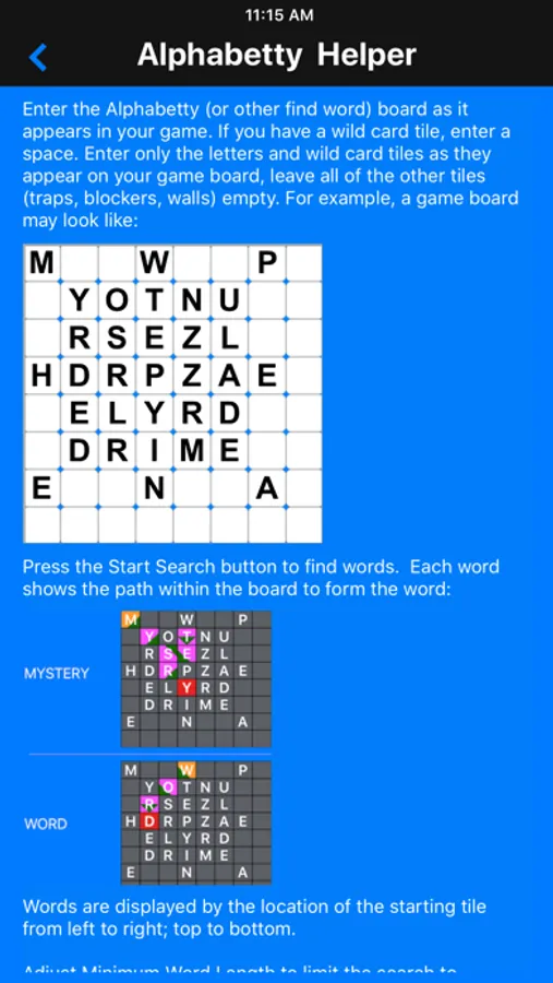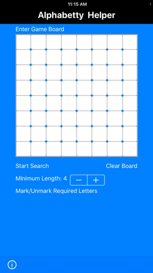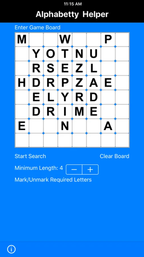 Reach new levels in Alphabetty and other boggle or find word games. Get the most out of your turns by finding longer words, words that use a specific tile, and more. The app supports wild cards (blank tiles) and game boards up to 8 by 8 letters. No ads or in-app purchases.