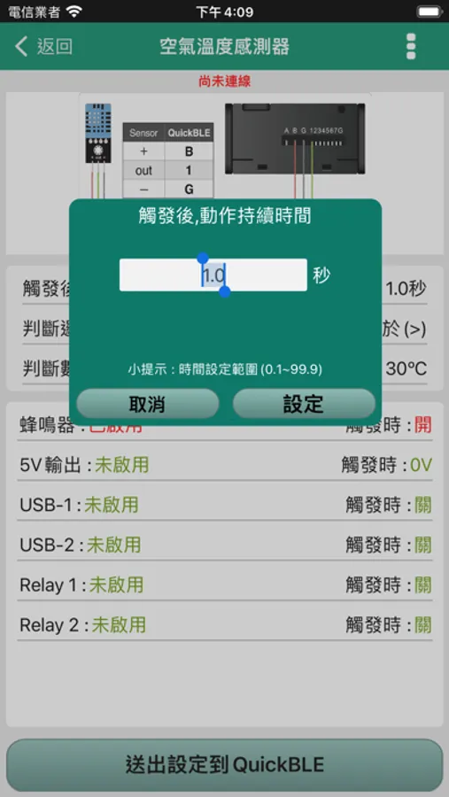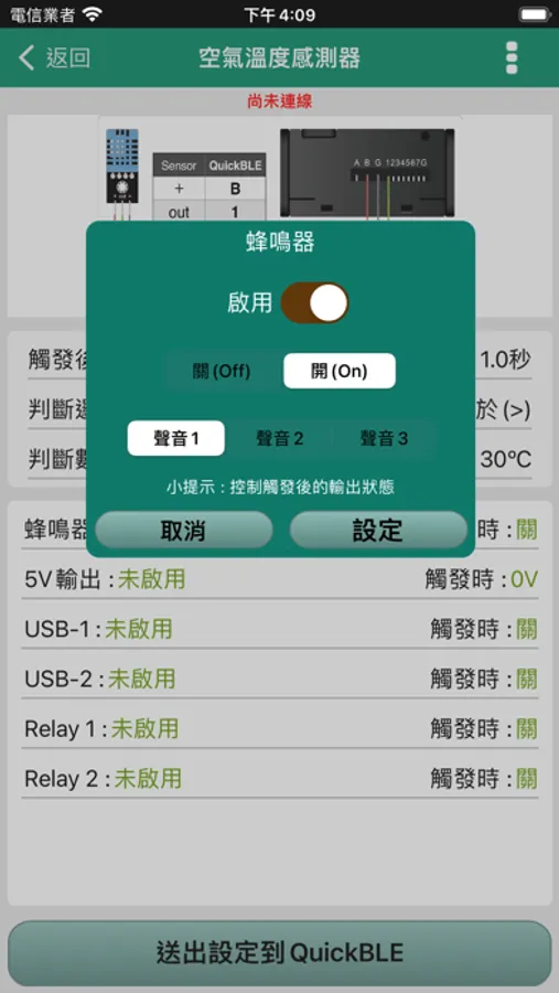 QuickBLE互動創意平台,不用寫程式、簡單接線,就可以利用感測器,做出互動創意裝置。透過App設定、即時監看感測器數據。