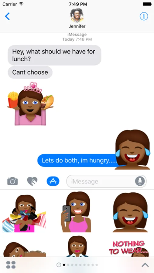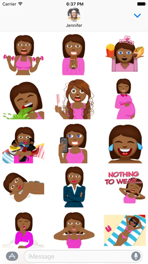 The best female emojis to use in your iMessage conversation. Specially created for women with a dark skin color, also see our other packs.