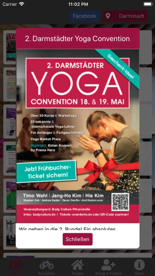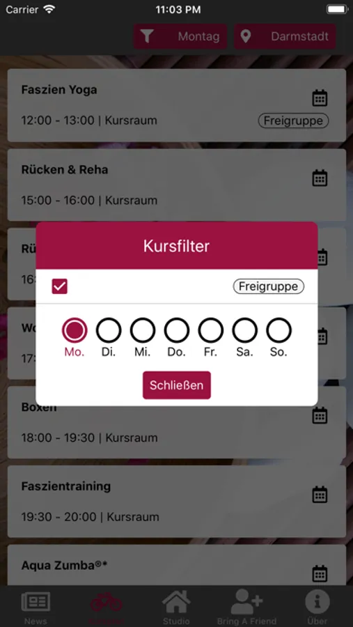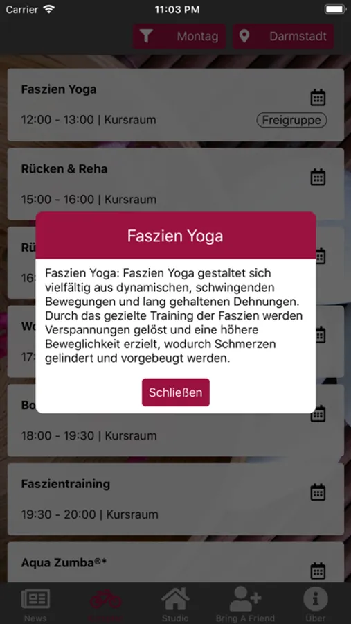 Weiter kann er durch das aktuelle Kursangebot stöbern und bei Interesse, den Kurs direkt in seinen Kalender eintragen lassen.