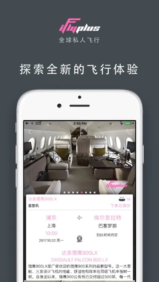 iFlyPlus has launched a mobile application where you can receive private flight information and book your luxury trip and private jet easily. Stay with iFlyPlus, inspiring your lifestyle!