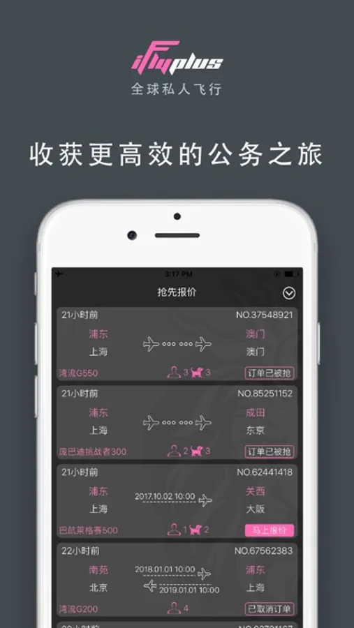 6.首创运营商「来报价」功能,实现公务航空公司实时抢单,闷声赚大钱