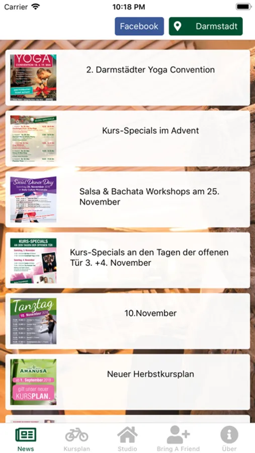 Der User erhält News rundum das Amanusa Fitness Studio.