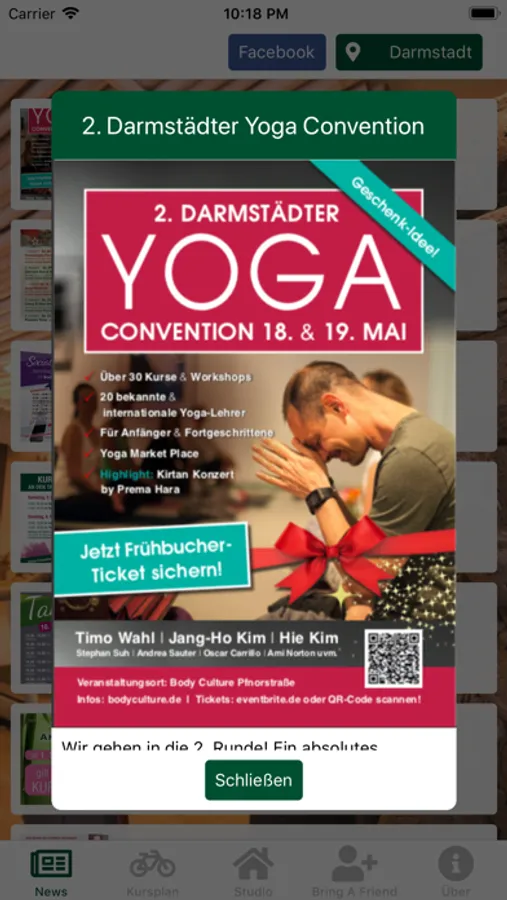 Weiter kann er durch das aktuelle Kursangebot stöbern und bei Interesse, den Kurs direkt in seinen Kalender eintragen lassen.
