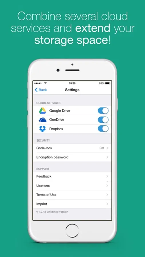 Connect with one or more cloud services. With every additional cloud service, your storage volume will increase. We support following cloud services: