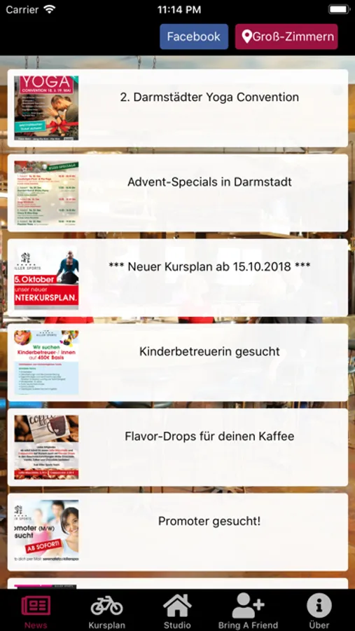 Der User erhält News rundum die Killer Sports Fitness Studios.