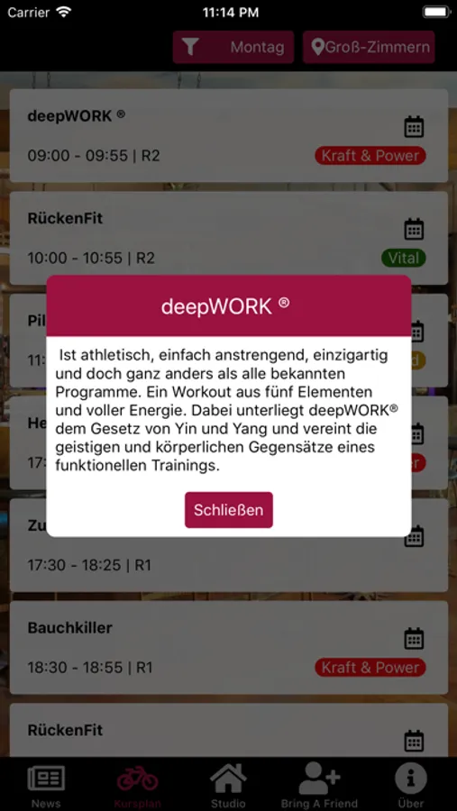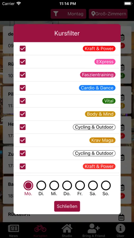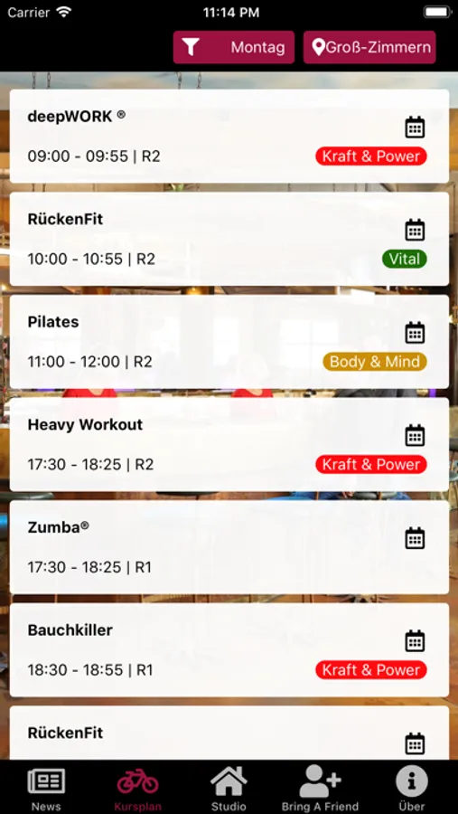 Weiter kann er durch das aktuelle Kursangebot stöbern und bei Interesse, den Kurs direkt in seinen Kalender eintragen lassen.