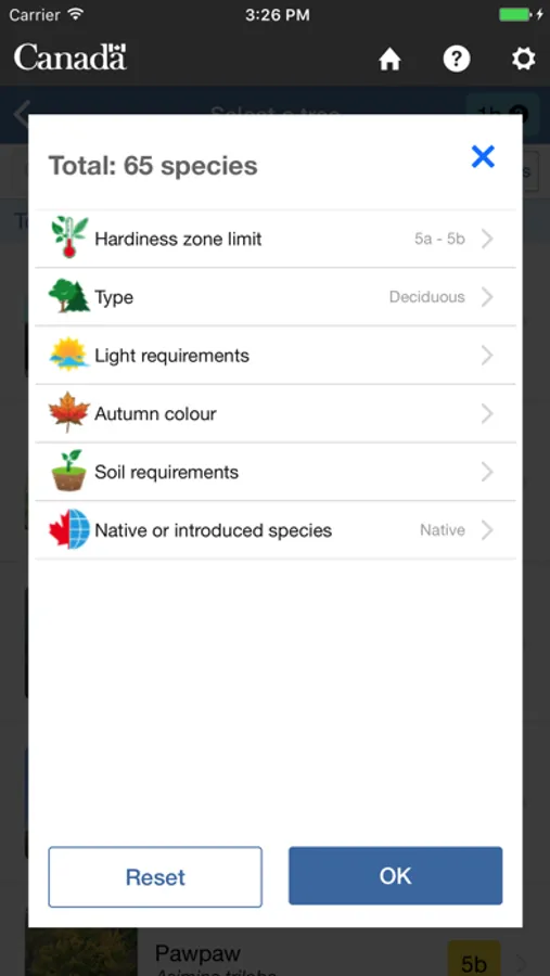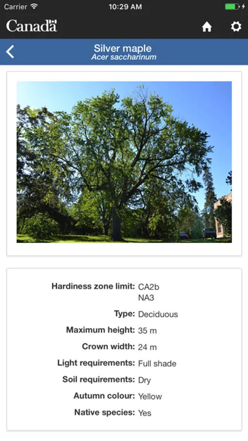My Tree provides a list of selected trees of Canada and their hardiness zones to allow Canadians to choose a suitable tree for their environment. This application allows users to identify their Canadian hardiness zone using their mobile device’s GPS or manually via a touch screen and determine which native and introduced trees are adapted to the climate in their location and other hardiness zones within Canada. Users can access photos, illustrations, and basic information on each tree profiled in the application.