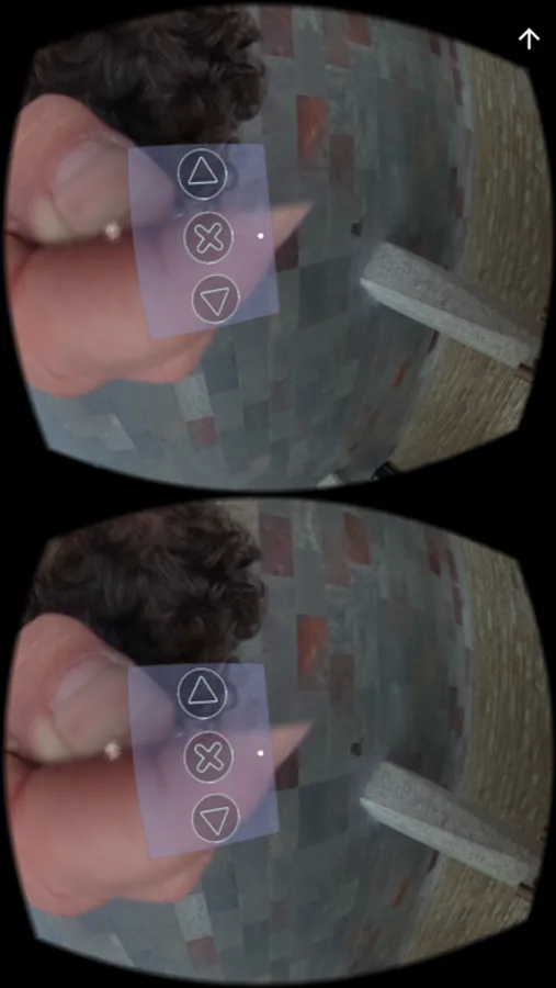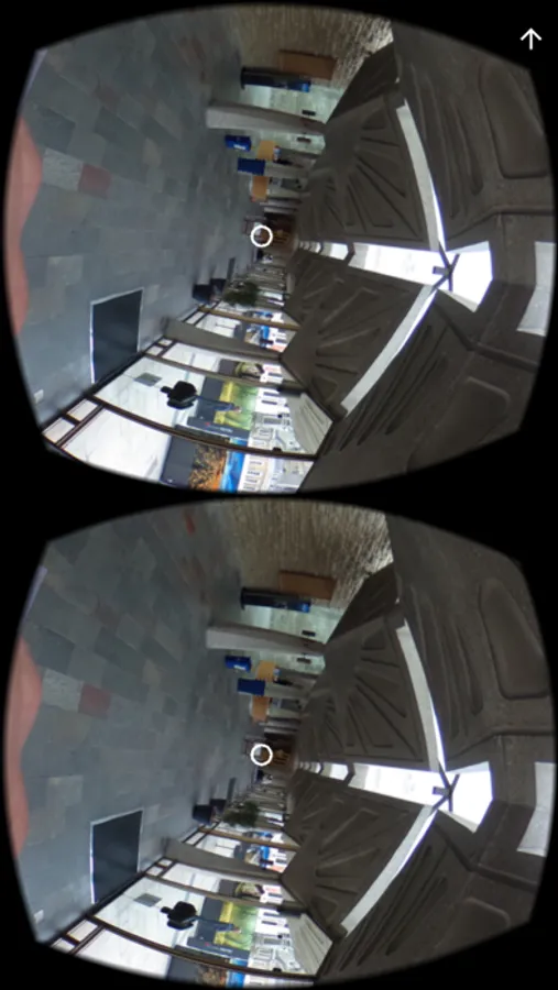 3. Place your phone into your headset and focus on the image you wish to view. Once in the 360 image or video, look down to see controls. Focus on Next, Previous or the X exit button for a few seconds to navigate.
