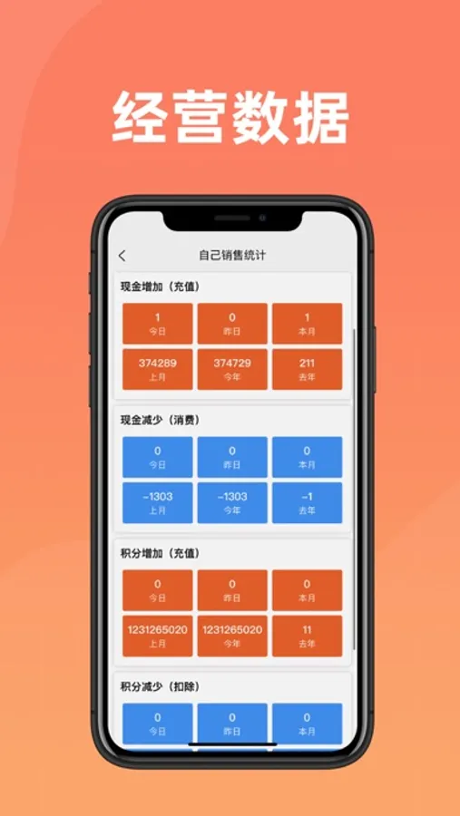 销售额查询:可以对自己,对全部员工,对单个员工查询消费额,可以查看当日,昨日,当月,上月,今年,去年的消费额,做到账目一眼明了。