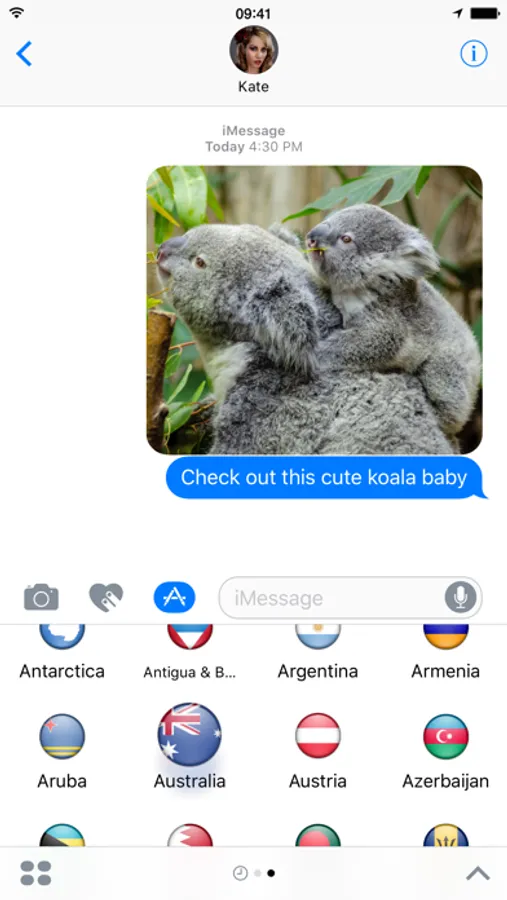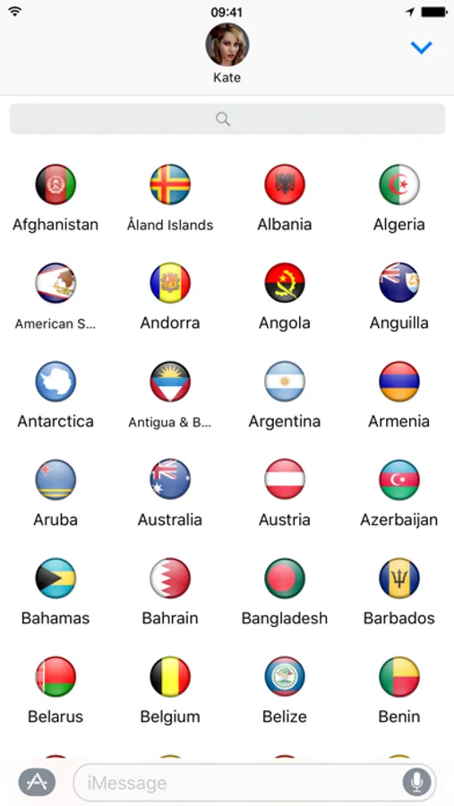 This pack of stickers contains flags of all countries. You can send an image of a flag image and attach a flag to any message.