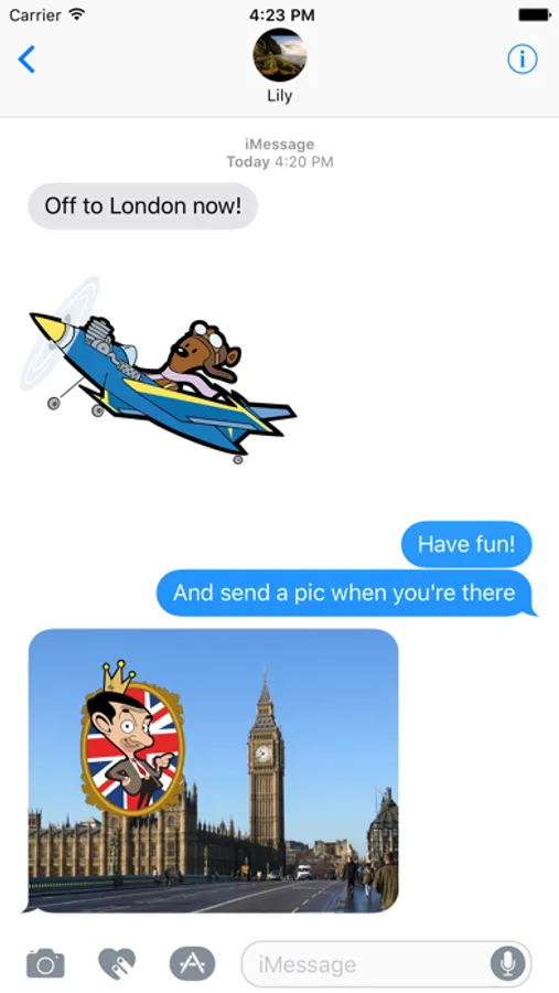 Spread the fun when chatting with friends with over 60 fantastic and exclusive Mr Bean stickers or place them over images and see what you can create.
