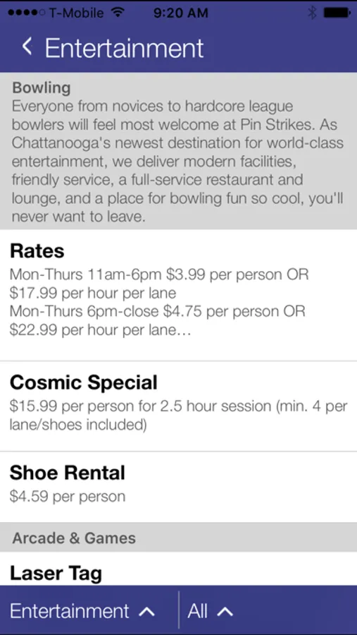 Download the App for fun, savings and lots of activities at Pin Strikes with locations in Stockbridge, Georgia and Chattanooga, Tennessee. Scroll through for a list of fun from bowling to laser tag, bumper cars to video arcades – even billiards and a great bar and grill to refuel for more fun. Watch the loyalty rewards add up, keep your smart phone handy for special updates and more when you tap the App for: