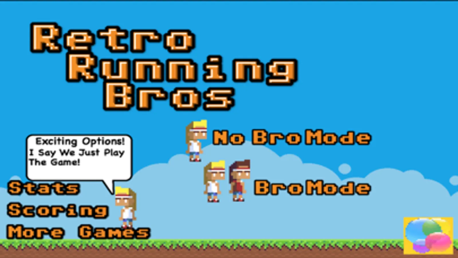Retro Running Bros features a one player mode and a unique two player mode where two players play at the same