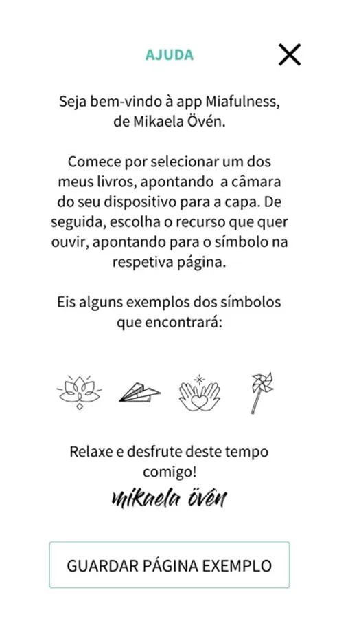 Aponte a câmara do seu smartphone ou tablet para a capa do livro e em seguida para cada um dos símbolos integrados nas páginas, para aceder às orientações da autora nas seguintes meditações: