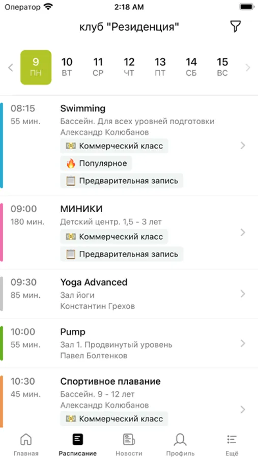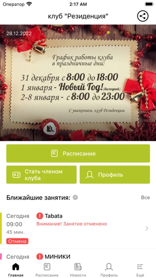 С помощью приложения вы можете следить за новостями, расписанием клубов, оперативно получать информацию об изменениях в расписании и специальных предложениях.