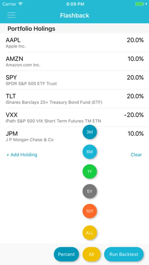 Lookback lets you backtest trading strategies and see how a portfolio of stocks would’ve performed historically. Enter a few holdings and with a single touch of a button, Lookback crunches the numbers and generates detailed historical returns and risk analytics, allowing you to make more informed investment decisions.