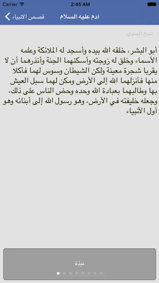 - تطبيق يعرض قصص الانبياء بشكل مريح ولطيف للمستخدم