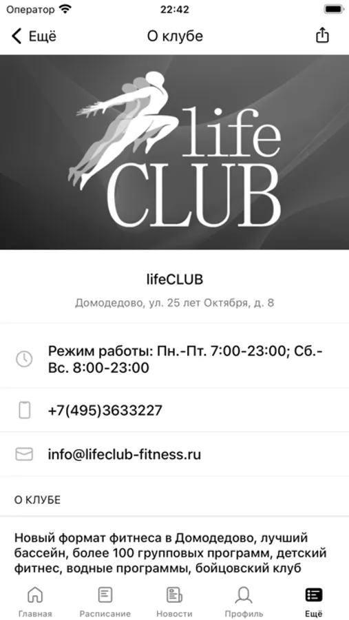 С помощью приложения вы можете следить за новостями, расписанием клубов, оперативно получать информацию об изменениях в расписании и специальных предложениях.