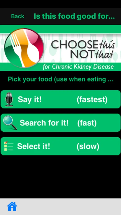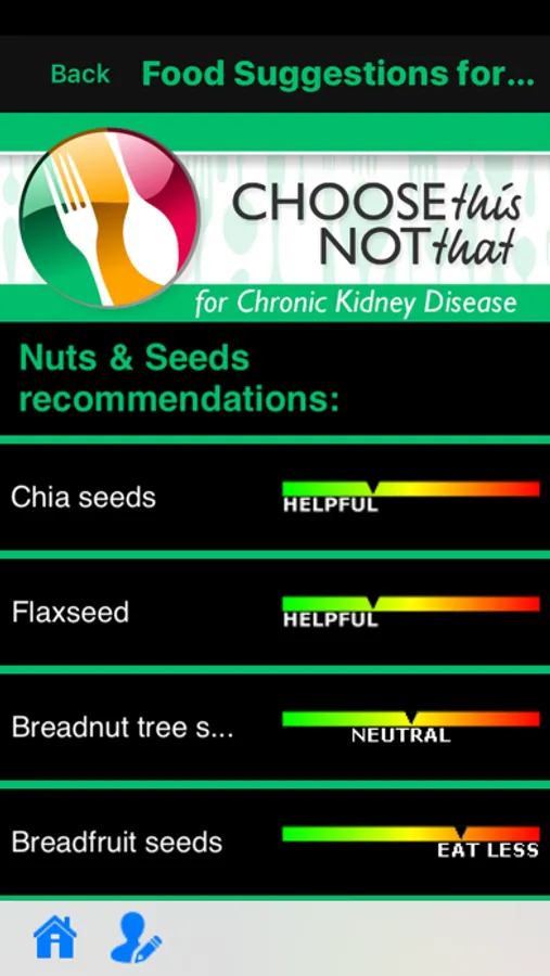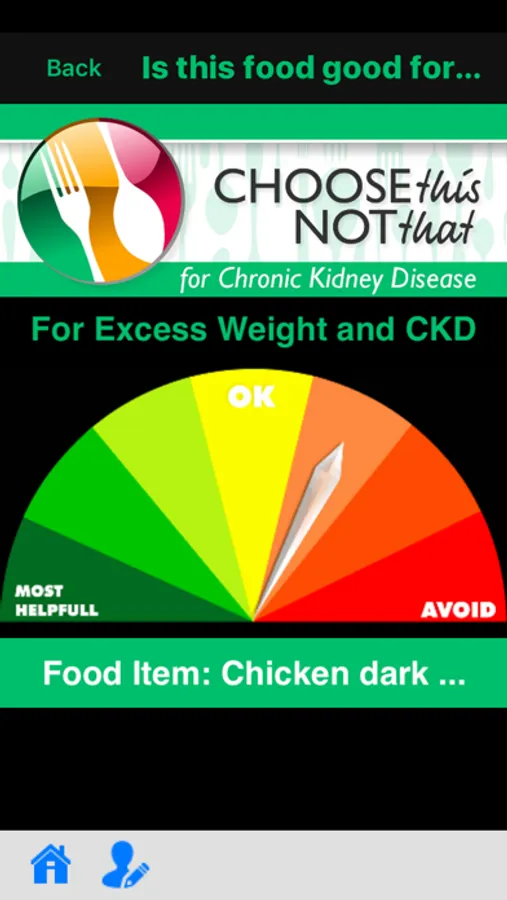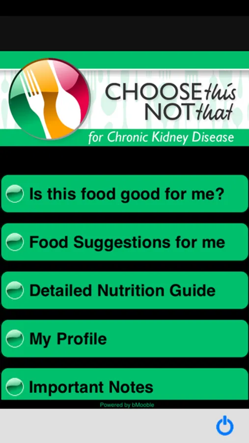 Choose This not That for Chronic Kidney Disease. Inside this colorful app, you will find easy to follow suggestions on how to improve your health through nutrition and the food choices you make every day. This app provides comprehensive and actionable nutrition guidelines for how to reduce your risk, prevent or stop the progress of CKD. If you rather tackle health issues and risks through proper nutrition and lifestyle changes then this app is for you! Last update: June 2017.