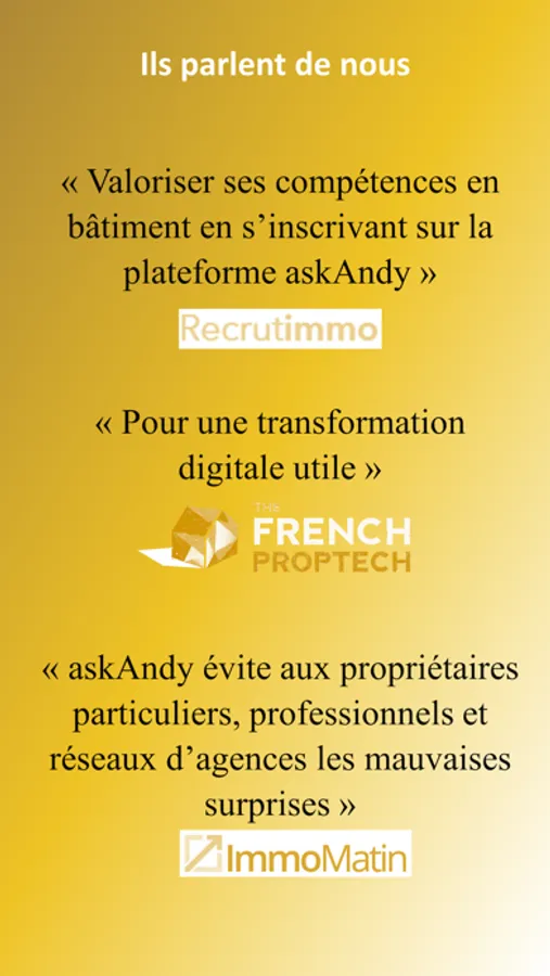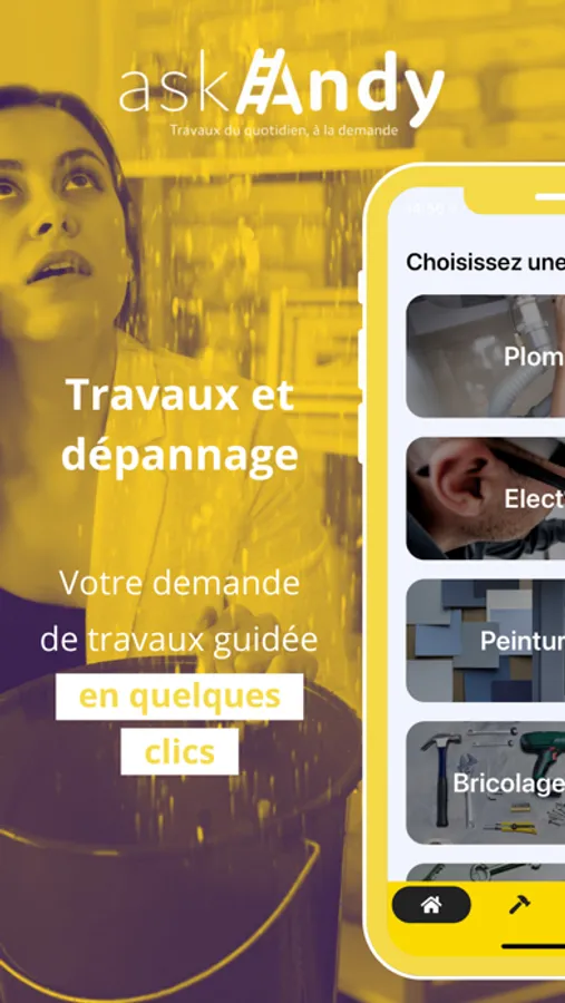 askAndy is the first real time and geolocalized app to find on-demand selected traders in France such as plumber, electrician, handyman, locksmith, painter...