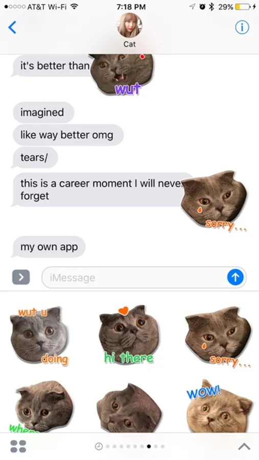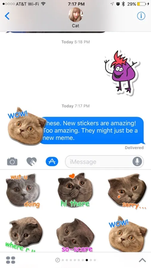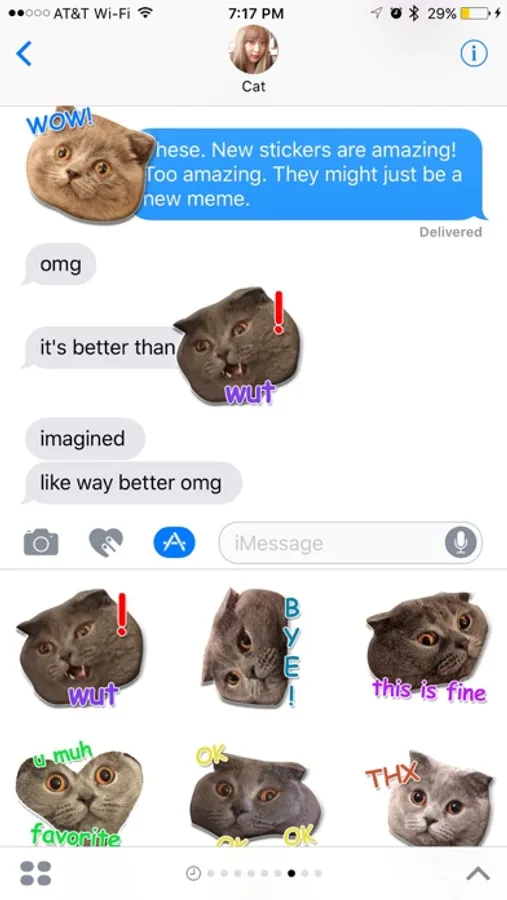 Me-ow, these cat stickers are da bomb. So meme, so frash, too frisky. Oh tay... listen up, you absolutely need these stickers. They will make your life purrfect. What's more to say? Once you download them, you'll have cat-scratch fefur.