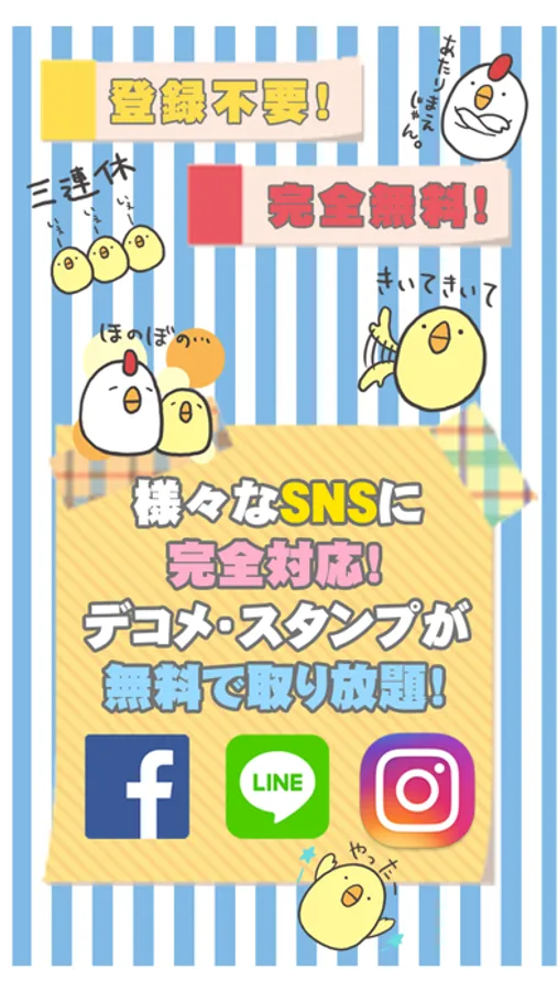 LINEやFacebookで使えるプレミアムなスタンプやデコメが今なら無料で取り放題!10代~20代の女の子に大人気!恋愛成就なかわいいピヨたまがあなたのスマホを彩ります!