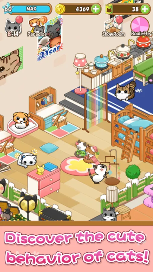 Baby Room is a feature where you can nurture kittens, you can sellect them as adult or kitties size cats.