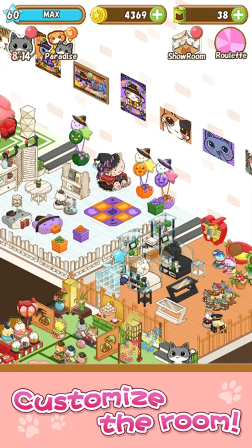 "Cat Room" is a free game where you can create your own personal room with cute cats.