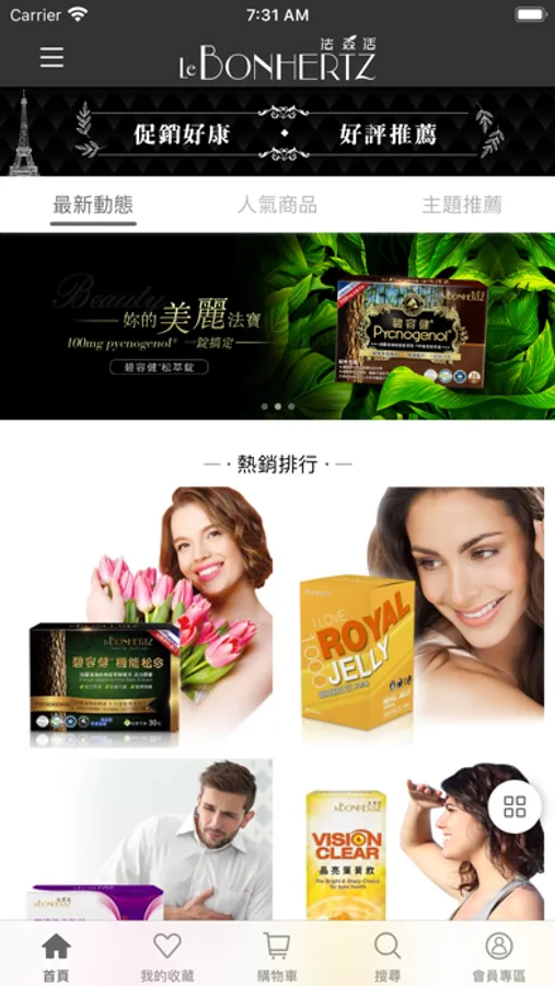 法國美妝保健食品、膠原蛋白Collagen、TT面膜、松樹皮面膜、松樹皮菁華、生物纖維面膜、碧容健Pycnogenol、葉黃飲、floraglo 葉黃素、膠原蛋白飲、葡萄糖胺飲Glucosamine、蜂王乳Royal Jelly、魚油Fish Oil、Mirtogel …多樣美妝保健食品熱銷中。