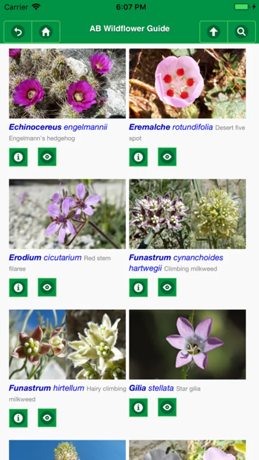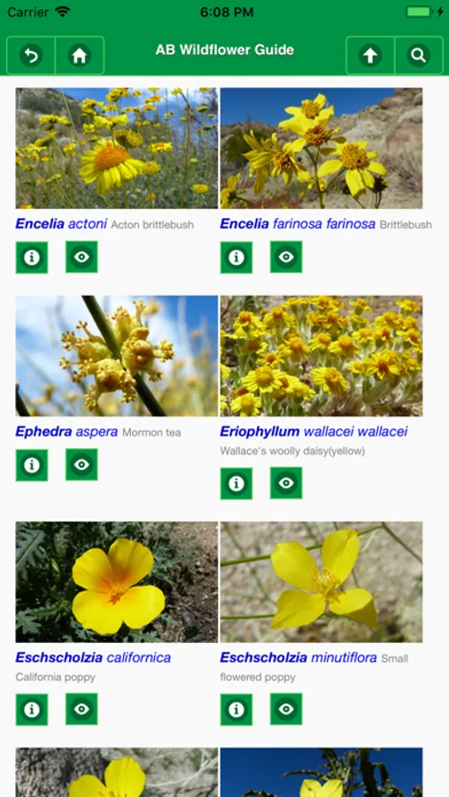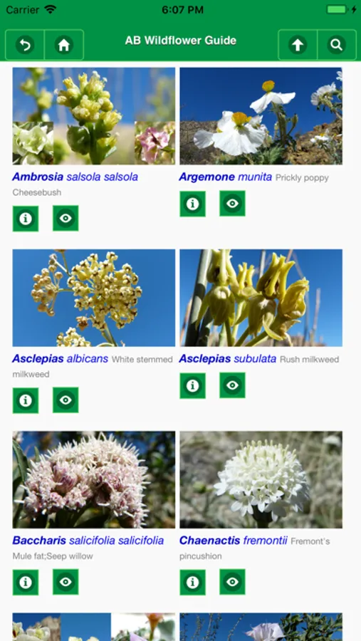 Optionally, you can purchase the complete guide (for a small fee): Our separate Borrego Wildflower Guide has descriptions, keys, scientific names and families, and thousands of pictures, for nearly 1300 wildflowers. Browse by common or scientific name. Select a single family. Search options include partial name, scientific name, or family.