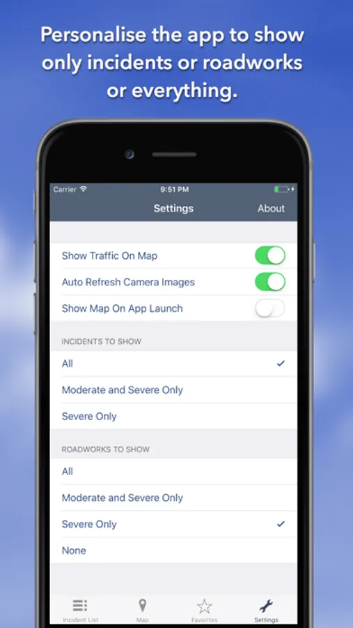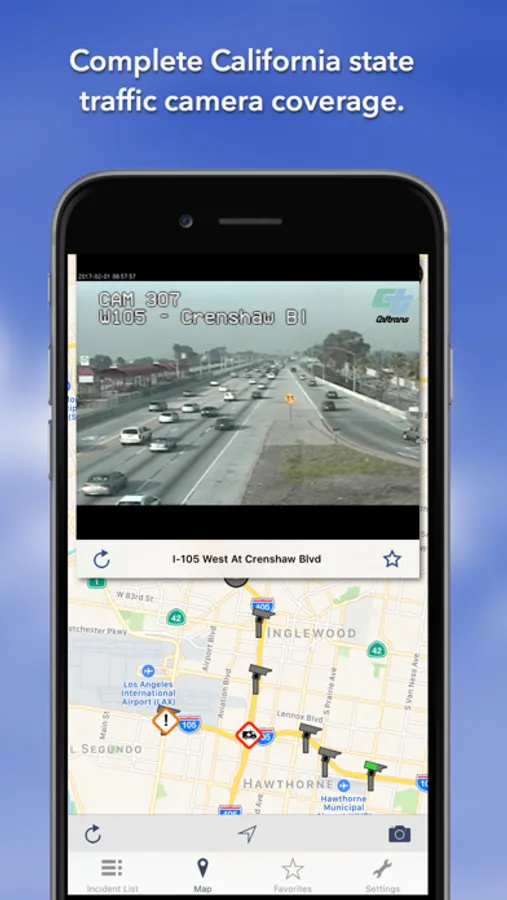 - Save your favorite cameras for quick access to see how clear/congested your usual routes are.