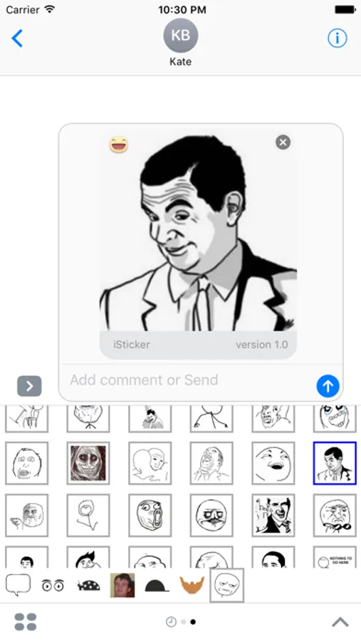 iSticker bring up some very popular sticker packs such as memes, rage comic, flat icon, troll face,... and so on.