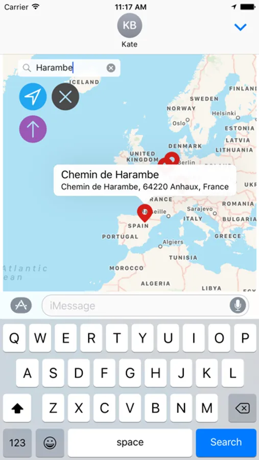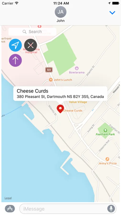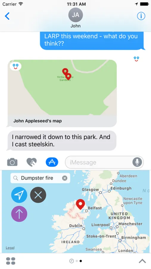 It's never been easier to send a quick update of where you are to friends when you're running late: Open MapMap, hit the purple arrow, and send! You can also use MapMap to search for whatever you want nearby and share what you found without ever leaving your conversation.