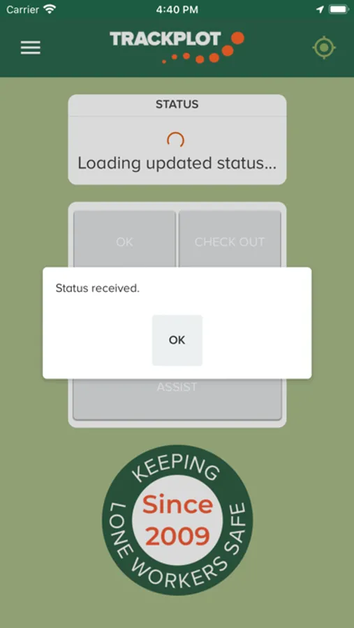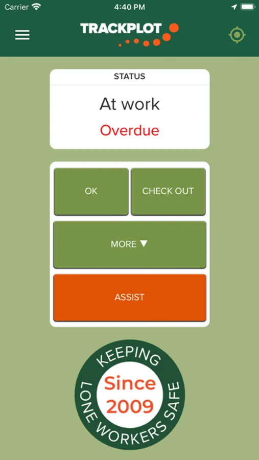 The Trackplot app for iOS is used to monitor the safety of workers whilst working alone. Lone workers report in at predefined intervals during the day. A worker sends an Event to the Trackplot Portal which then monitors their status throughout the day. The Trackplot Portal sends out notifications to selected colleagues in case a lone worker is overdue, or presses the Assist button.