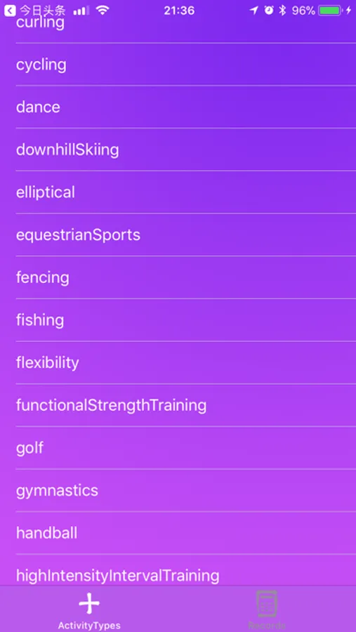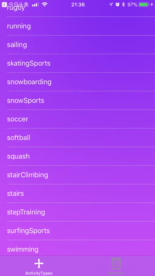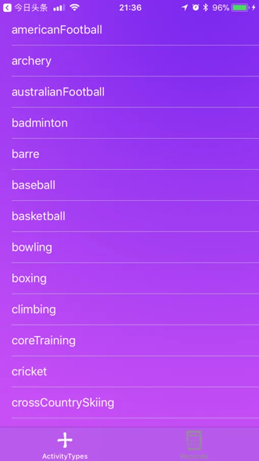 (1) add workout activity type to watch from iPhone;
