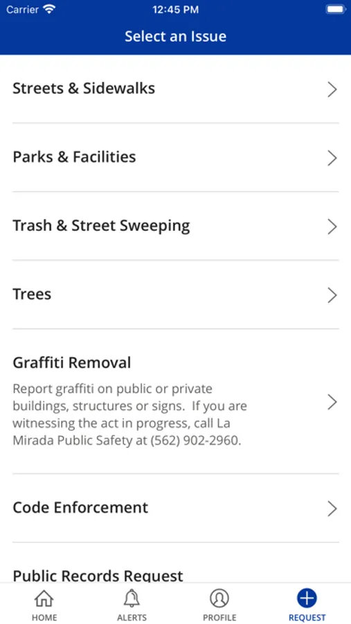 My La Mirada allows residents, businesses, and visitors access to La Mirada City services. With this smartphone app, users can digitally submit a variety of non-emergency City service requests such as graffiti, potholes, broken street signs, and public records requests using one convenient system. A picture of the issue can be included in order to provide City staff with additional details. My La Mirada can track the GPS location of your issue and will ensure that the service request is sent to the appropriate department in the City. The submitter will be able to track the request all the way through its resolution right from their phone, including updates and notifications. Other features include City news, local destinations and facilities, and the City calendar.