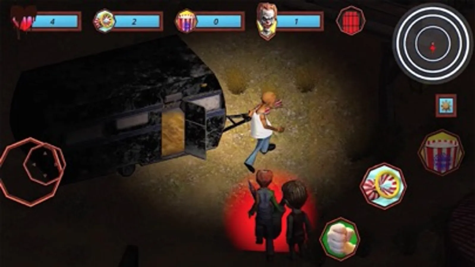 The radar in the upper right will give users a view of the attacking dogs, clowns, the unbeatable ventriloquist dummy and ammo in your area. When users cleared their current level of enemy clowns on the radar, they will see a green arrow pointing to the now open gate.