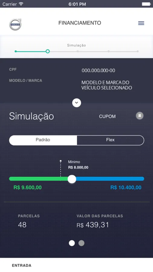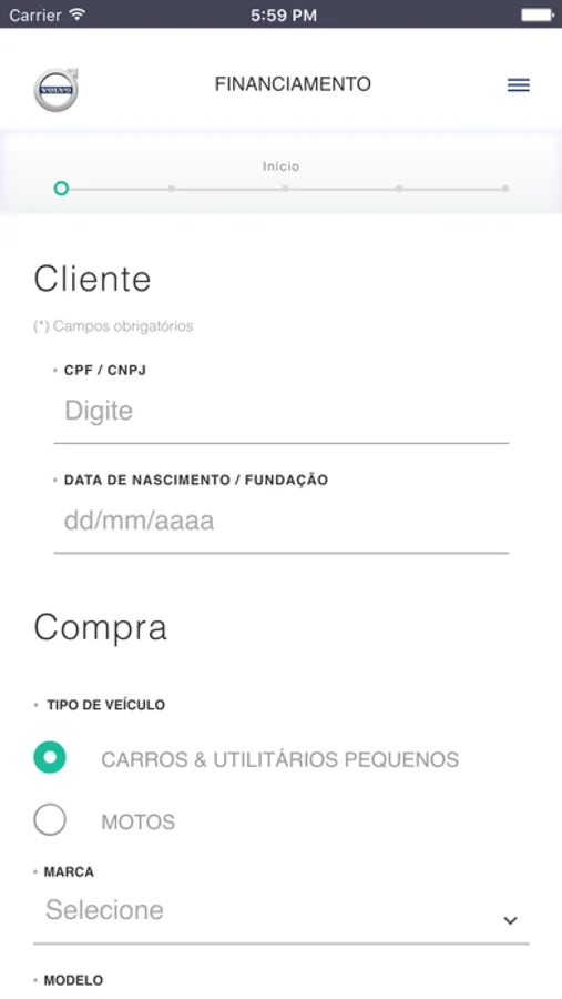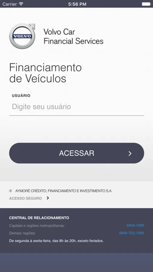 Esta aplicação é um canal de simulação, preenchimento e aprovação da proposta, mediante login (email). Neste momento, esta versão do aplicativo destina-se apenas aos funcionários do Grupo Santander Brasil e Concessionárias Volvo Car para venda de Financiamento Automotivo.