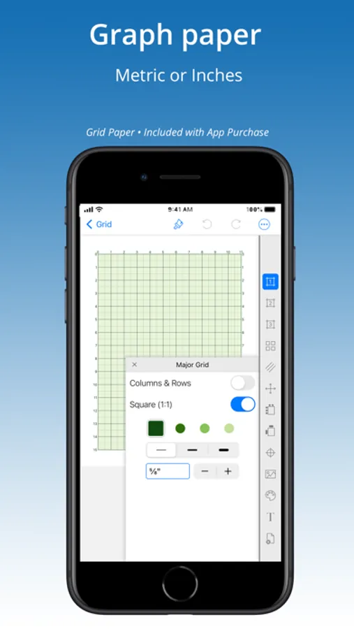 √ Print or share grids as a PDF, PNG or SVG to other apps for further editing — even as templates to laser or pattern cutting machines.