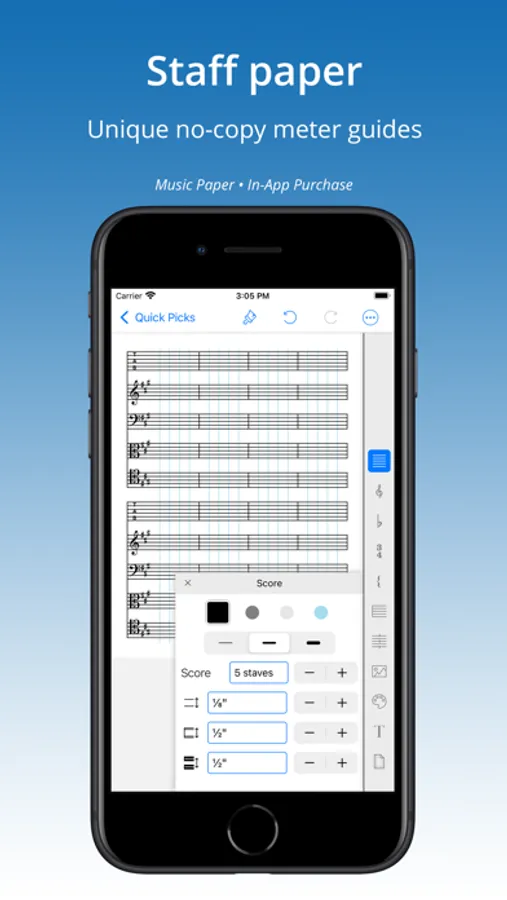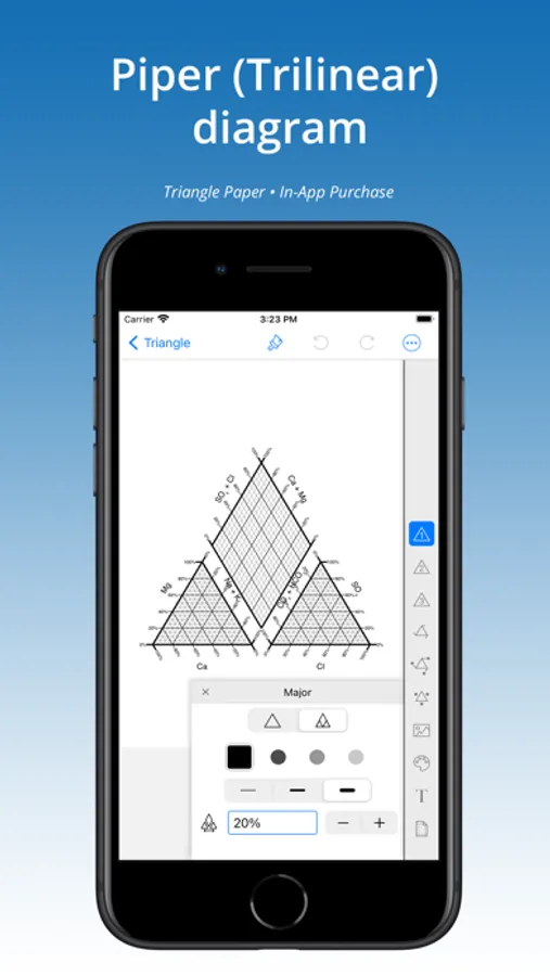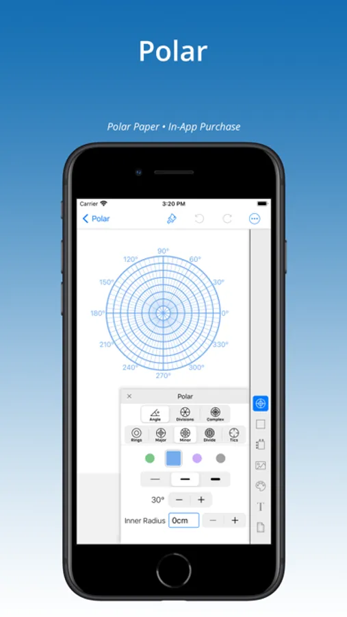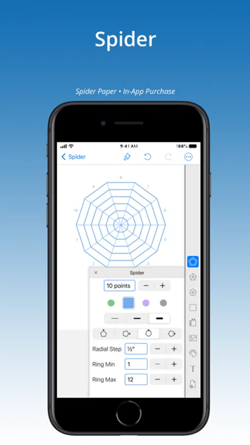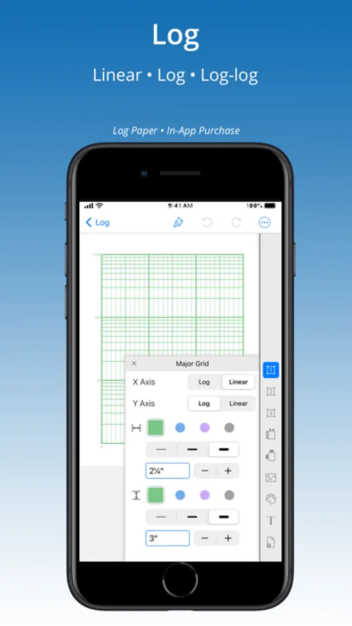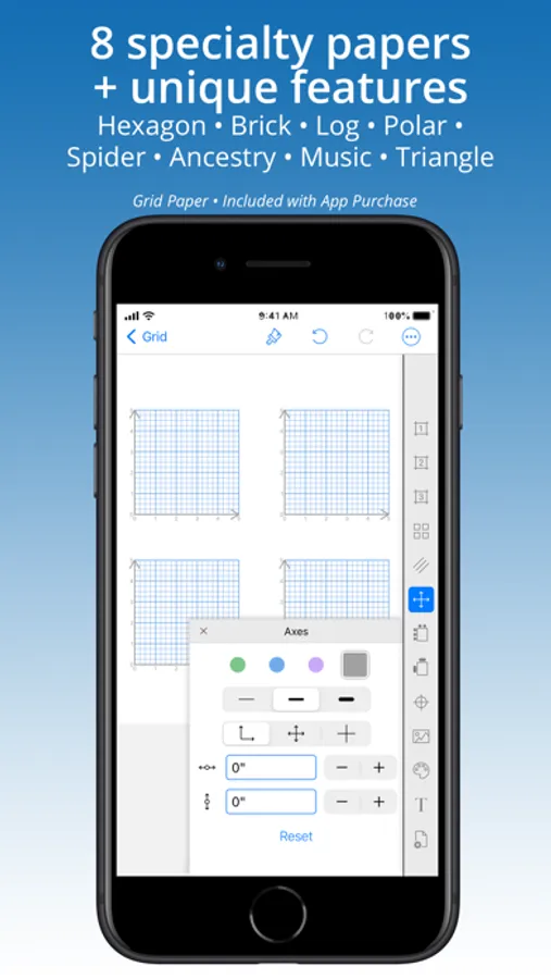 Create and print accurate, custom graph paper in inches or metric. Add specialty papers: hexagon, brick, polar, log, ternary-triangle, spider, or sheet music with InApp purchase.