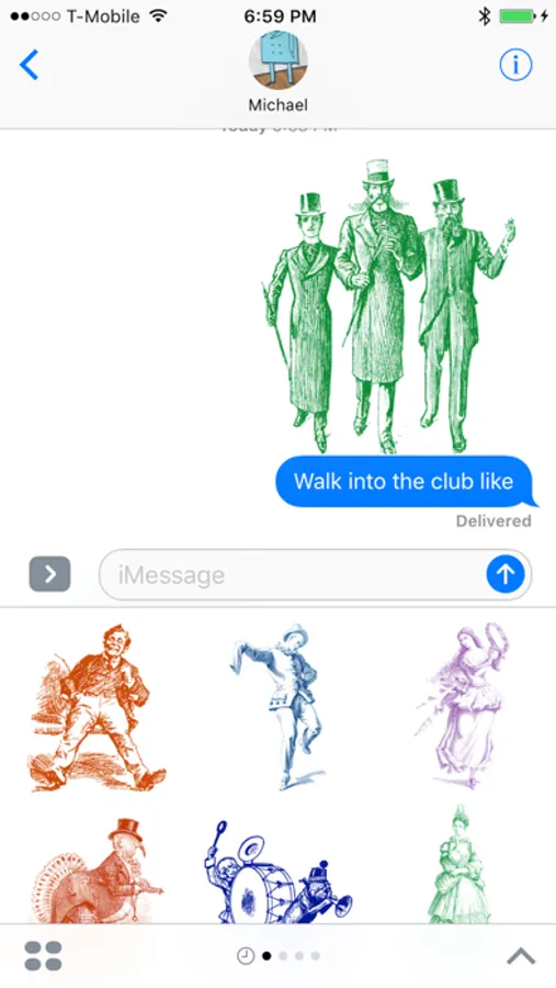 More than 100 old-timey stickers are jolly well included, with more (probably) on the way. Simply tap the sticker that most represents your innermost thoughts and say no more, the sticker is on its way. Glorious!