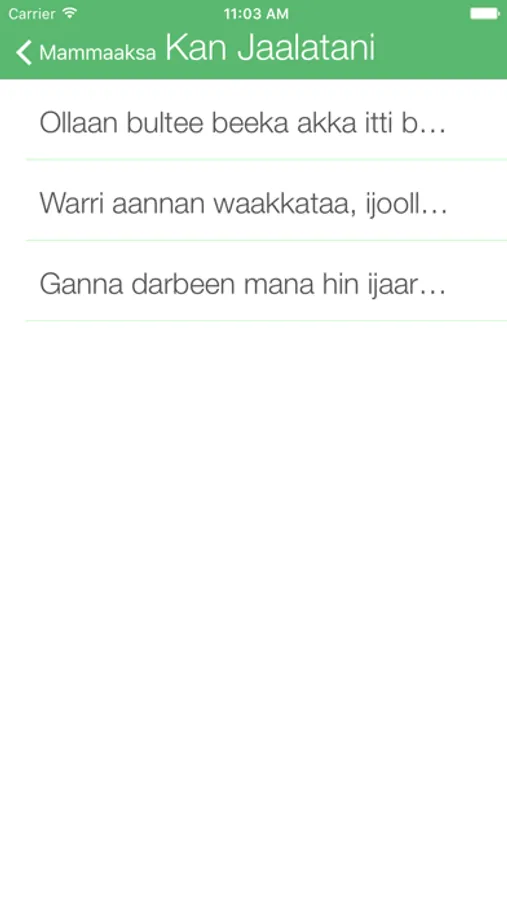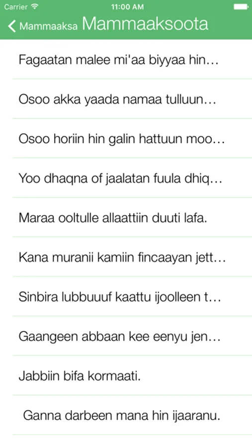 The app contains the wisdom and modest common sense of the Oromo nation over many generations expressed in the form of proverbs.
