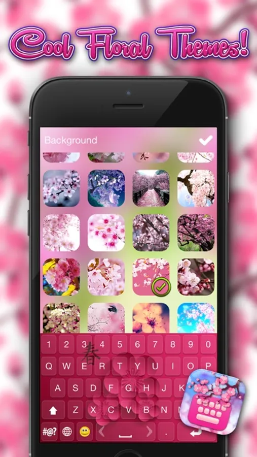 Enhance your iPhone's beauty with these romantic, pretty-looking, pink flowers. Imagine having a new keyboard and backgrounds each day. It's possible with this popular keyboard app. Download Sakura Keyboard Themes app totally free of charge and explore everything it offers!